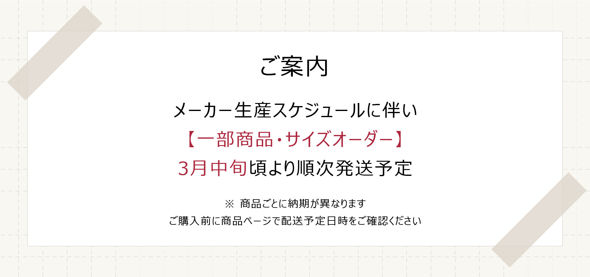 商品によっては、お届けまで4~5週間お時間を頂戴しております。