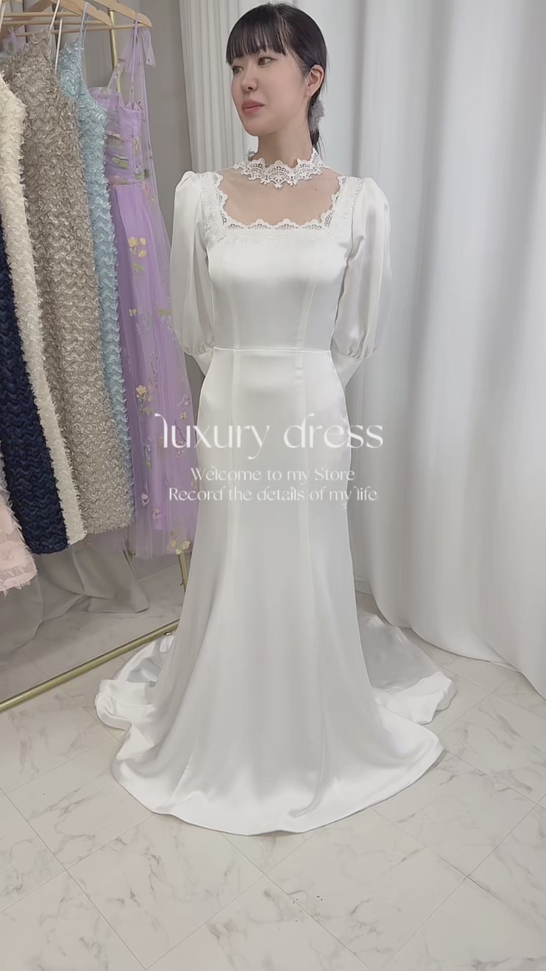 【ur21】ロングスリーブサテンネックレースソフトマーメイドドレス マーメイドライン