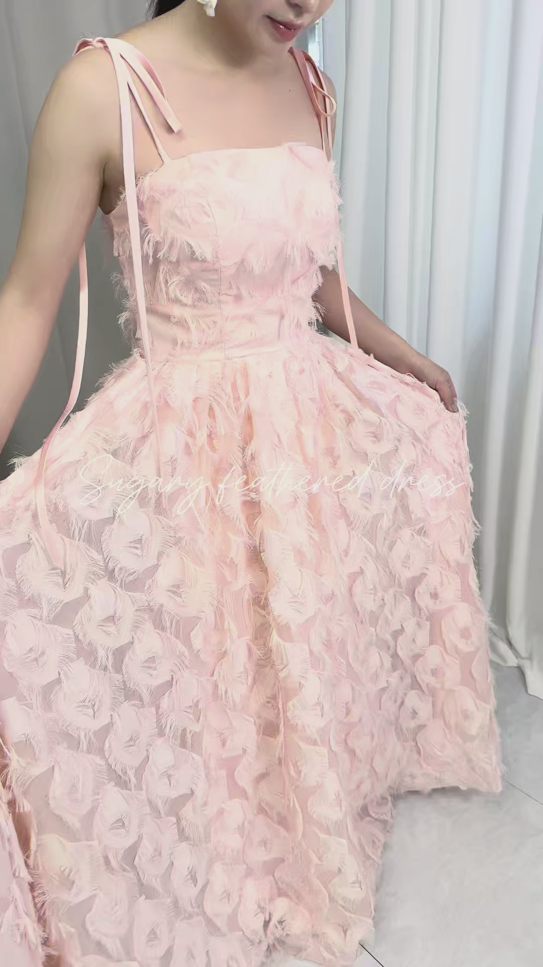 【wd718jx】肩リボンフェザーボリュームドレス