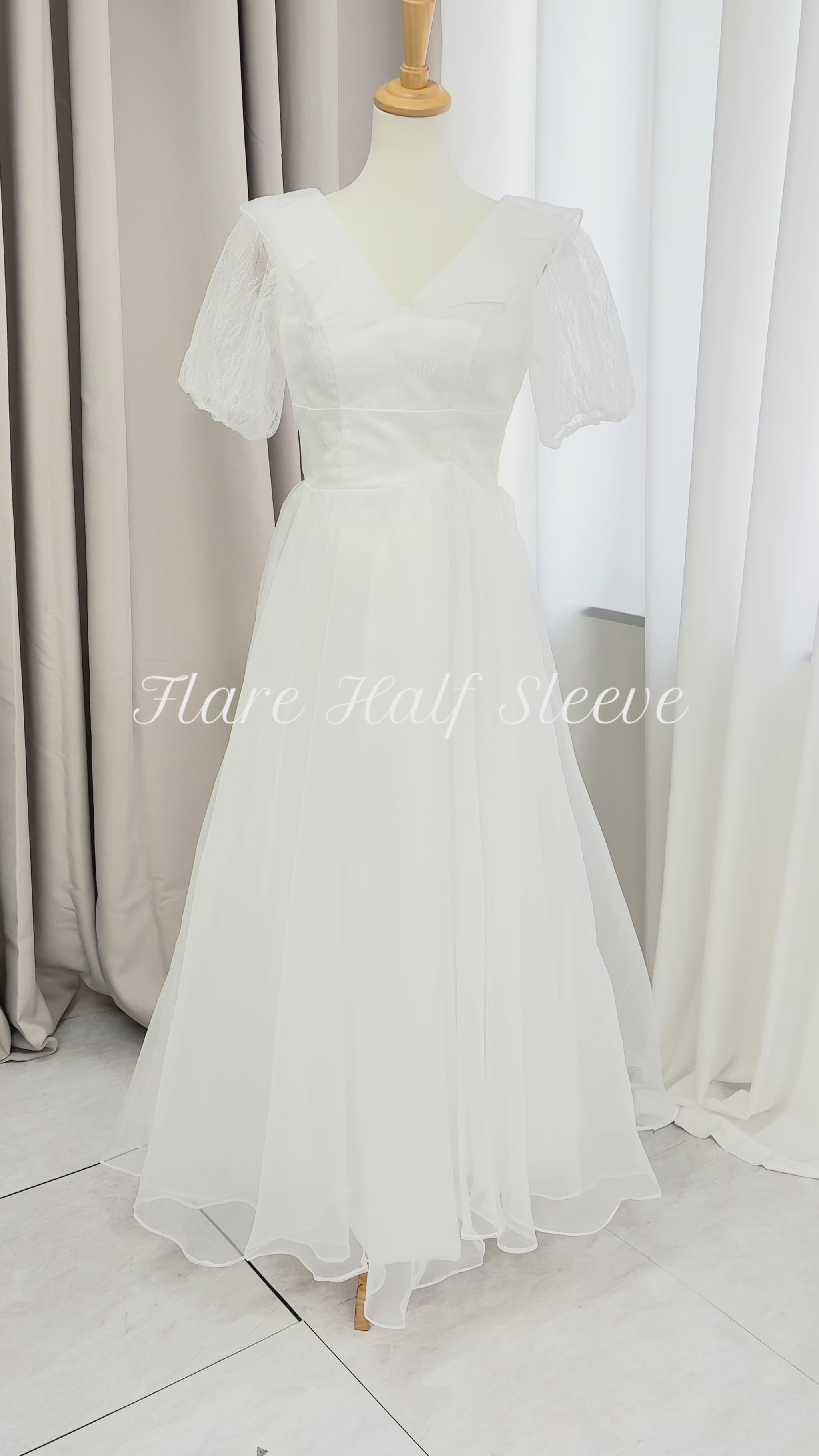 【wd482ls】フレアVネックハーフスリーブドレス Aライン